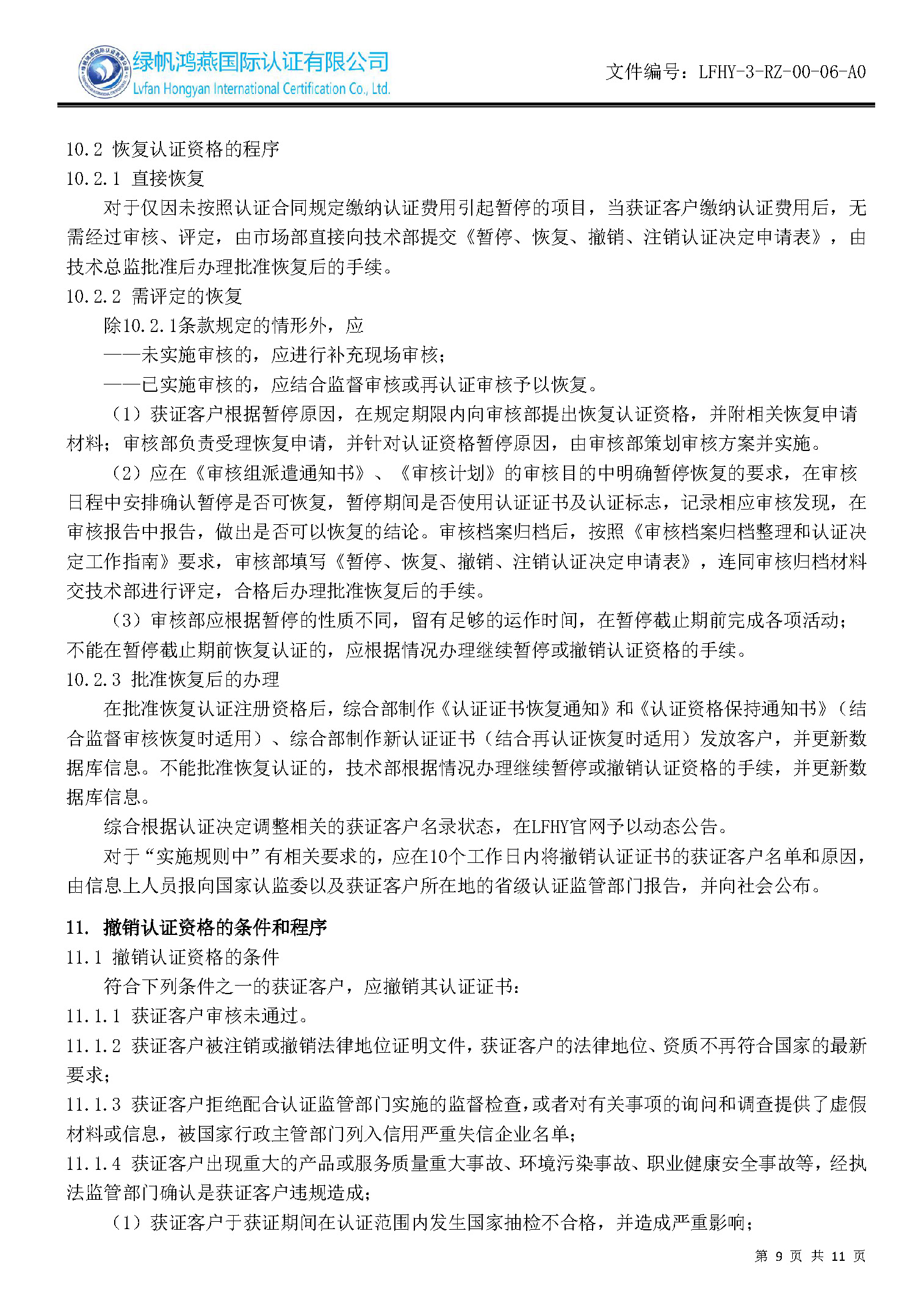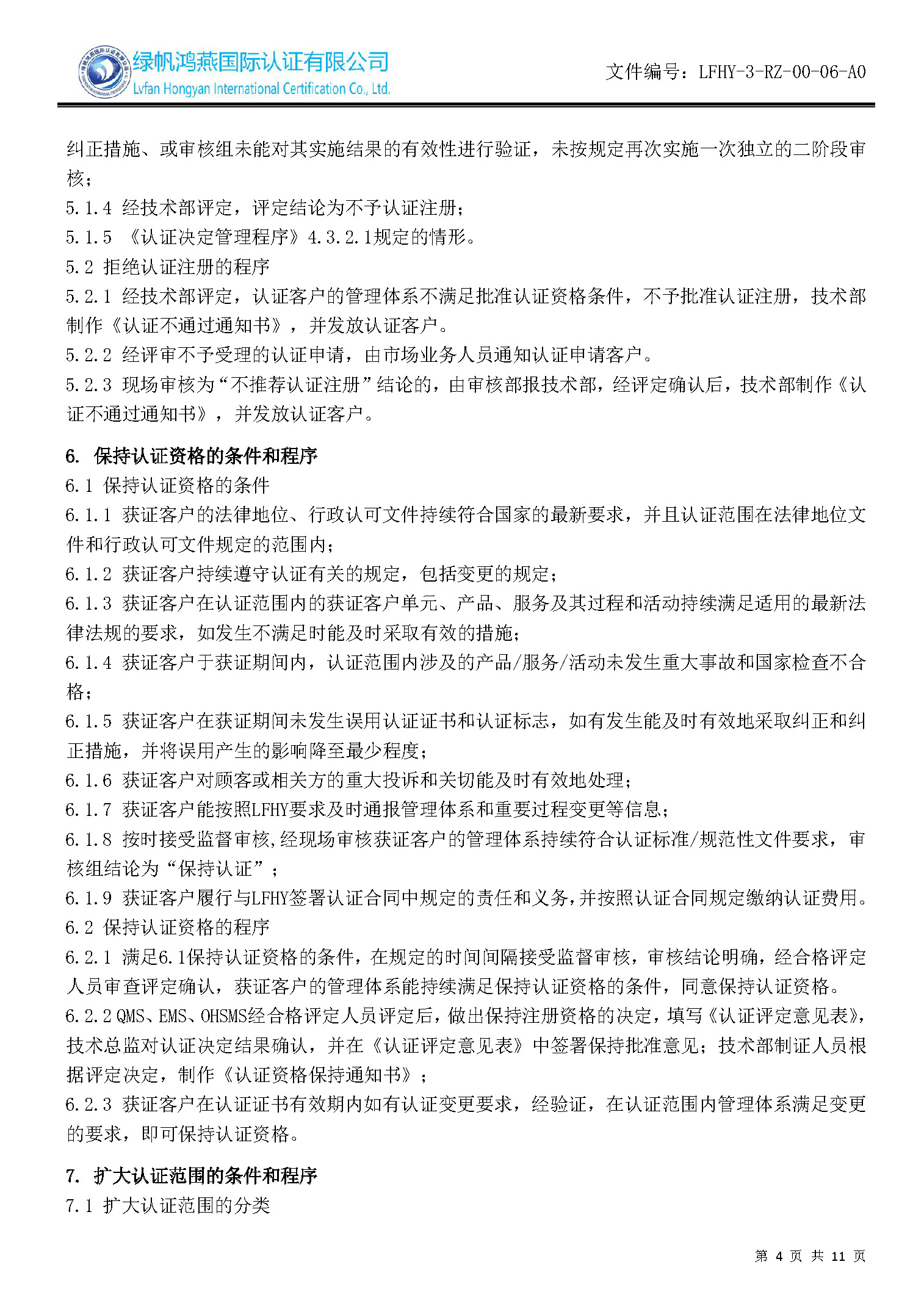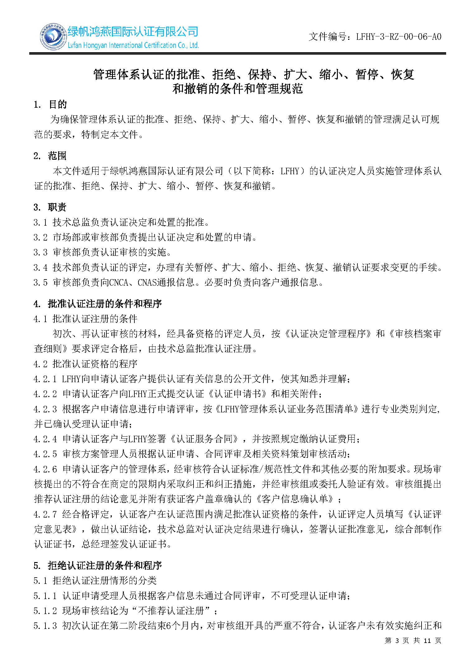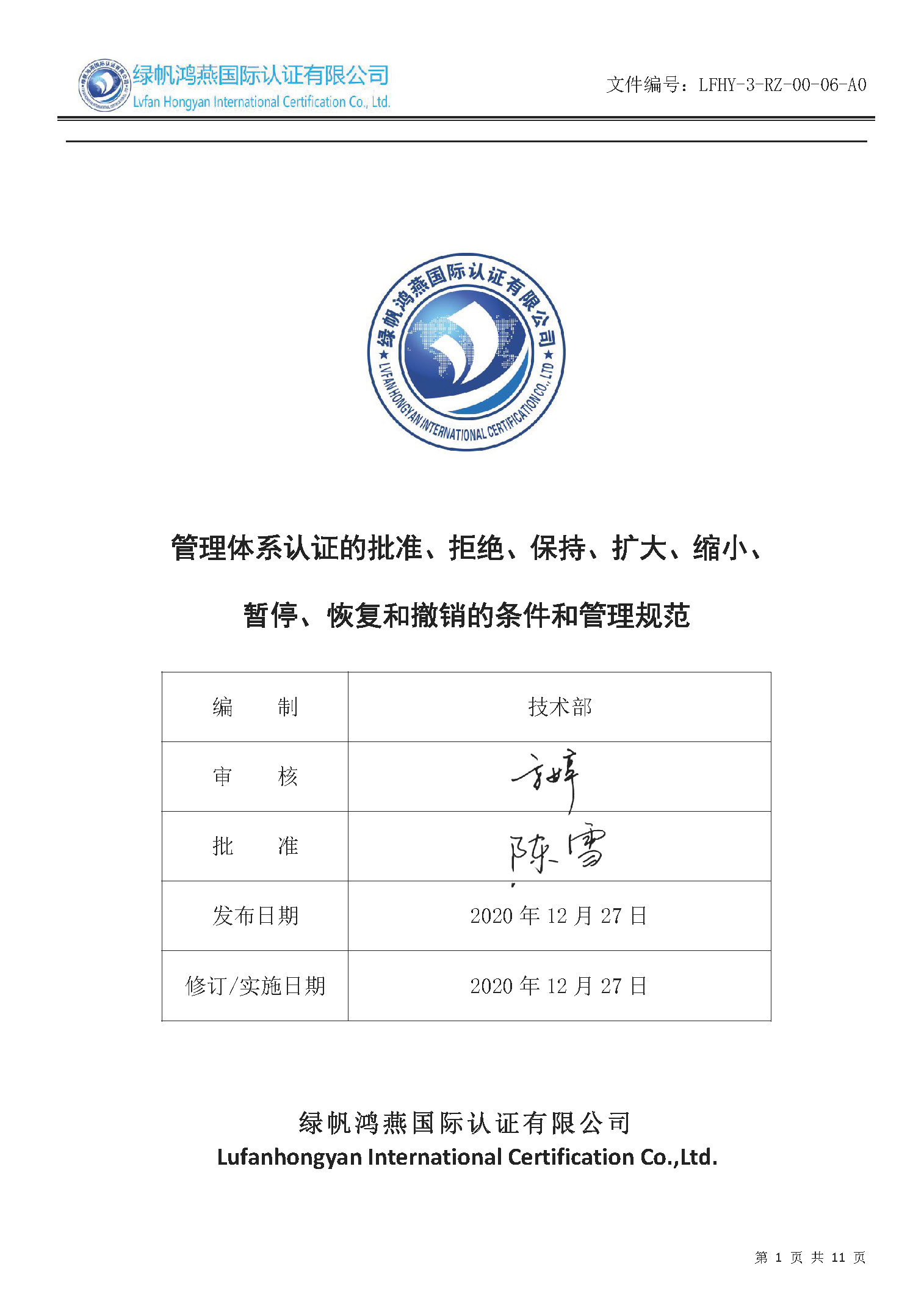 LFHY管理體系認證的批準、拒絕、保持、擴大、縮小、暫停、恢復和撤銷的條件和管理規范
