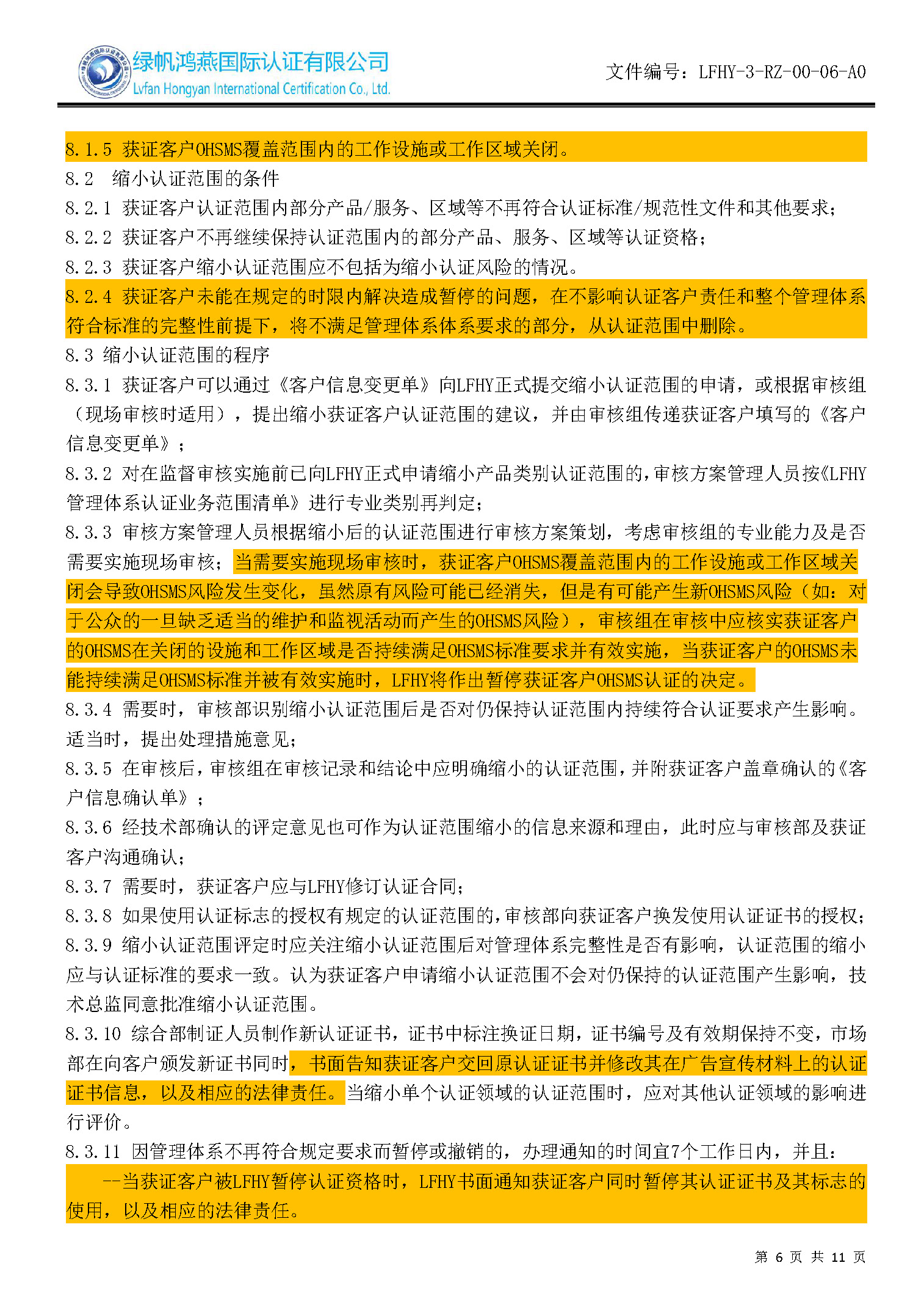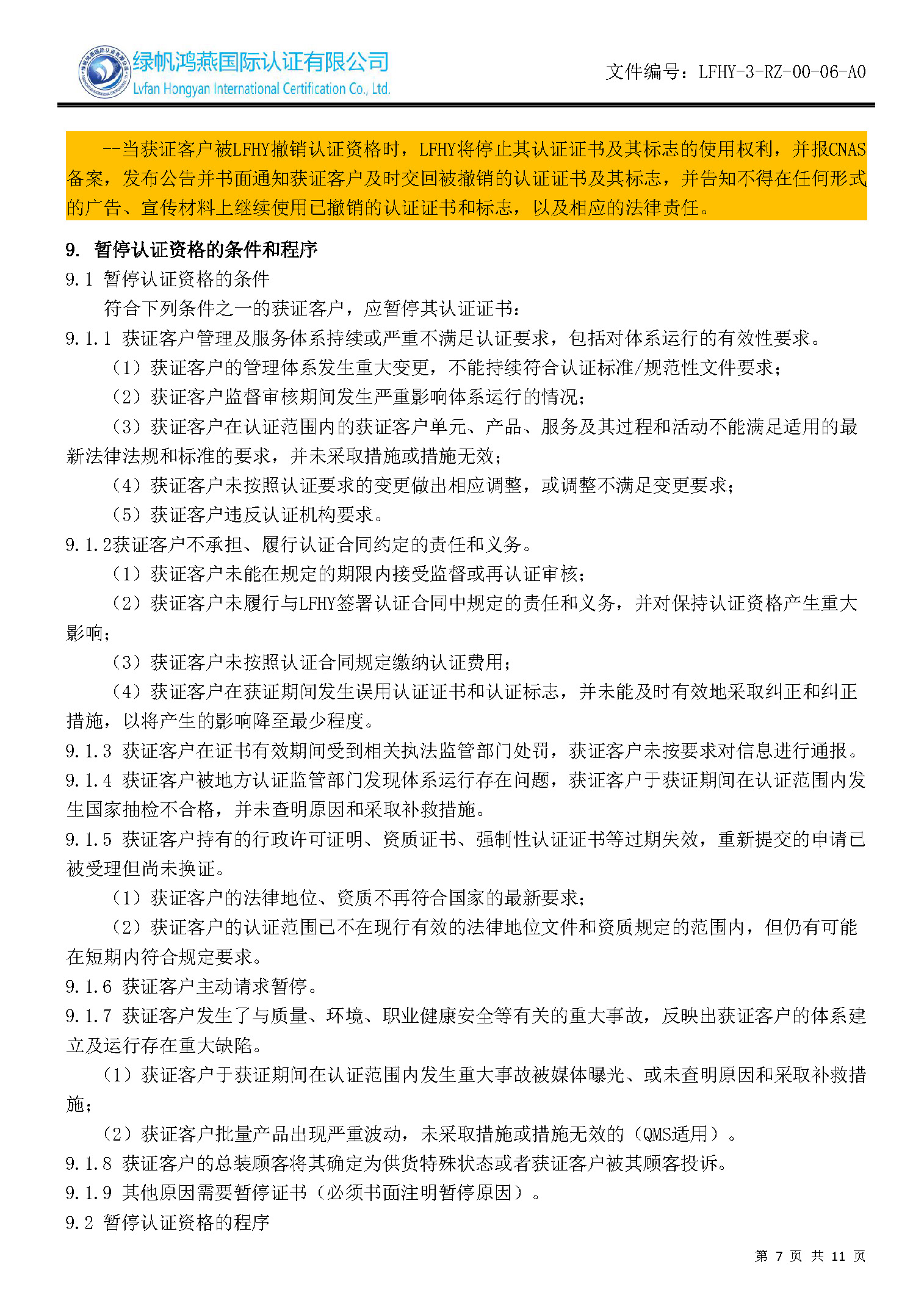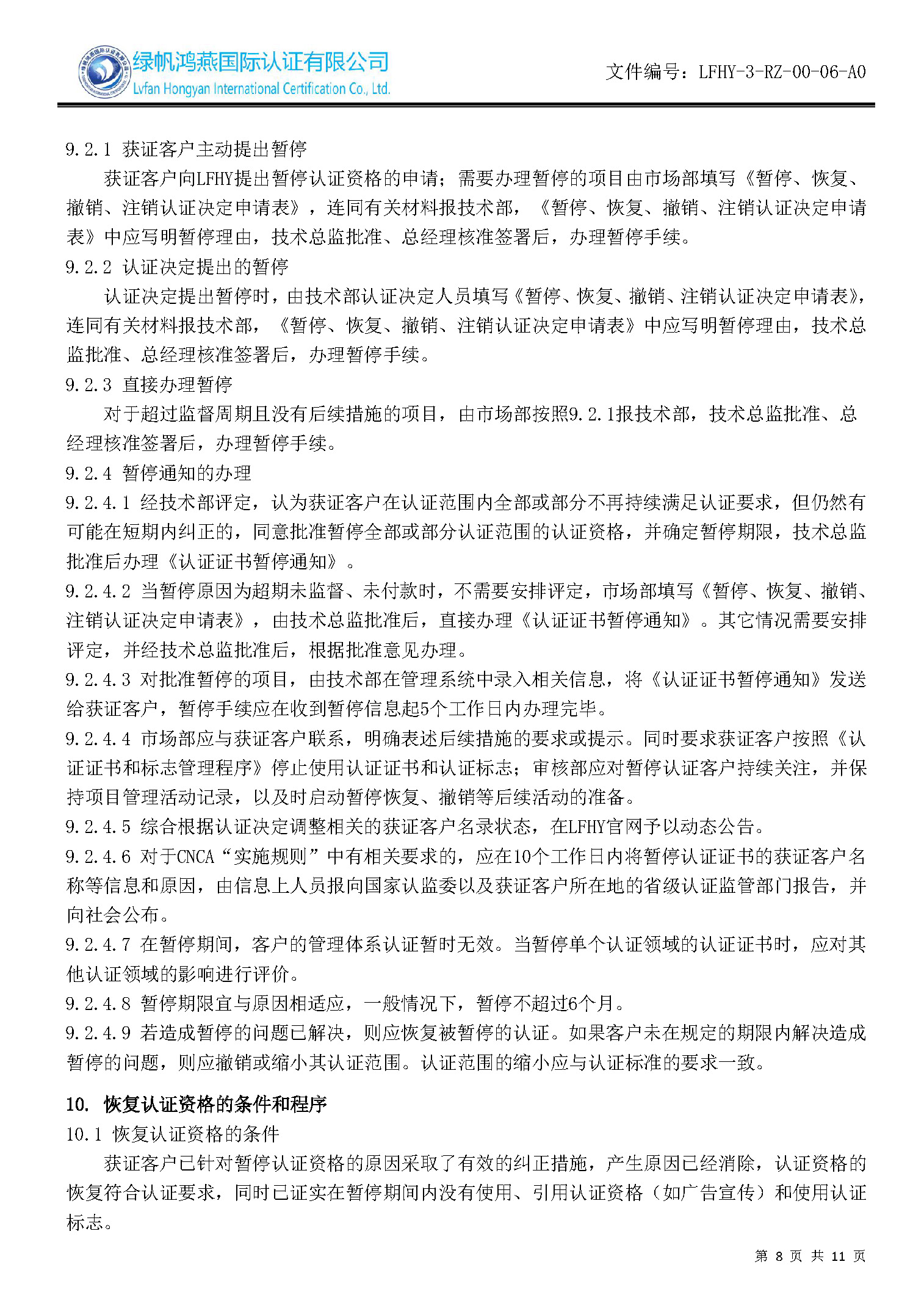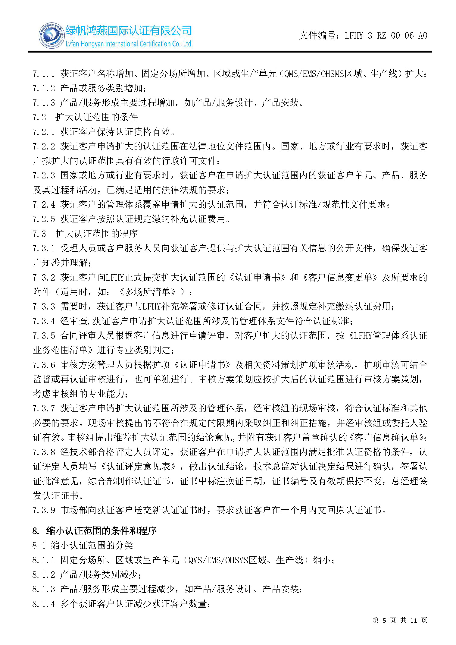 LFHY管理體系認證的批準、拒絕、保持、擴大、縮小、暫停、恢復和撤銷的條件和管理規范