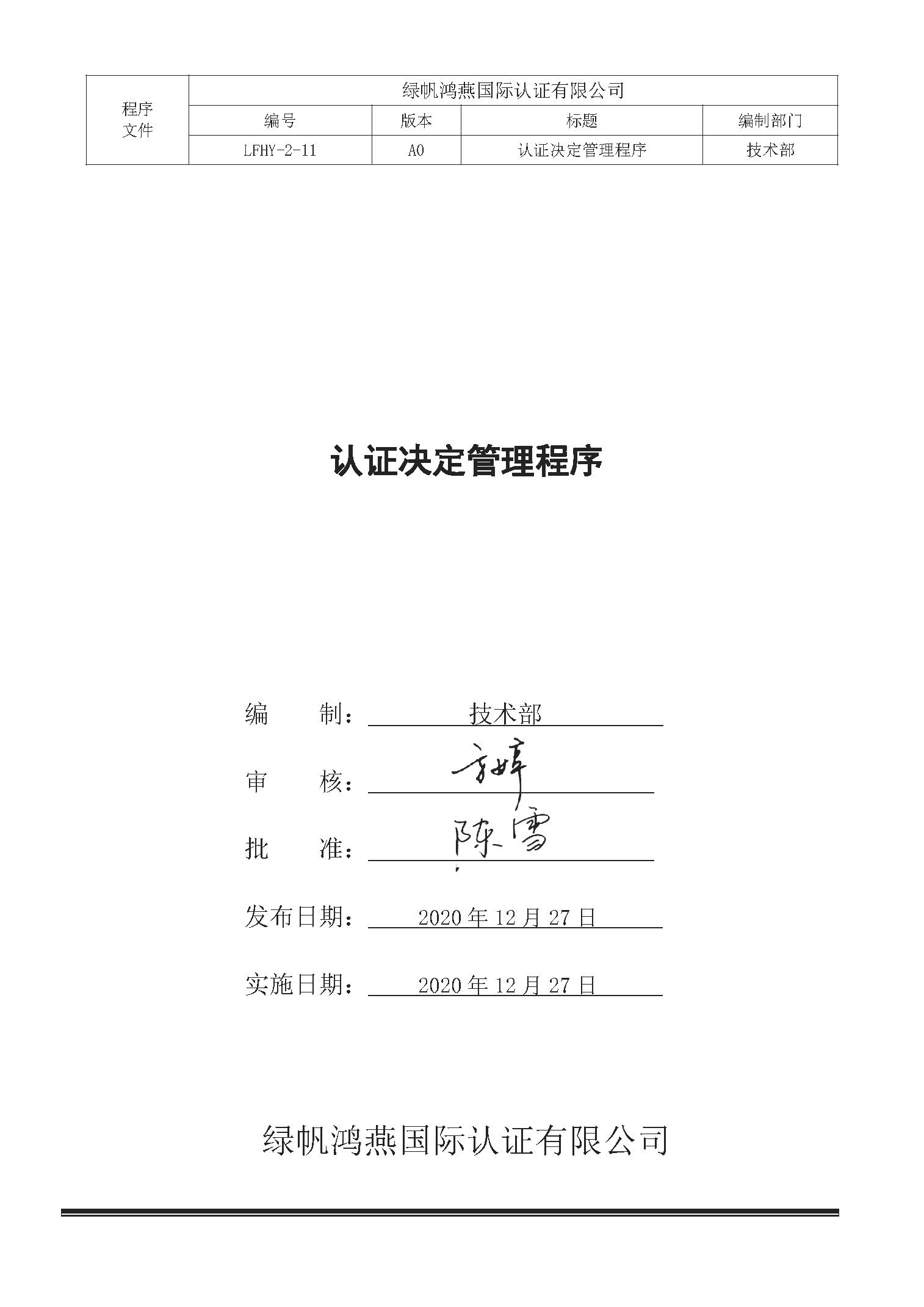 綠帆鴻燕國際認證有限公司(簡稱LFHY)是經國家認證認可監督管理委員會批準的第三方認證機構