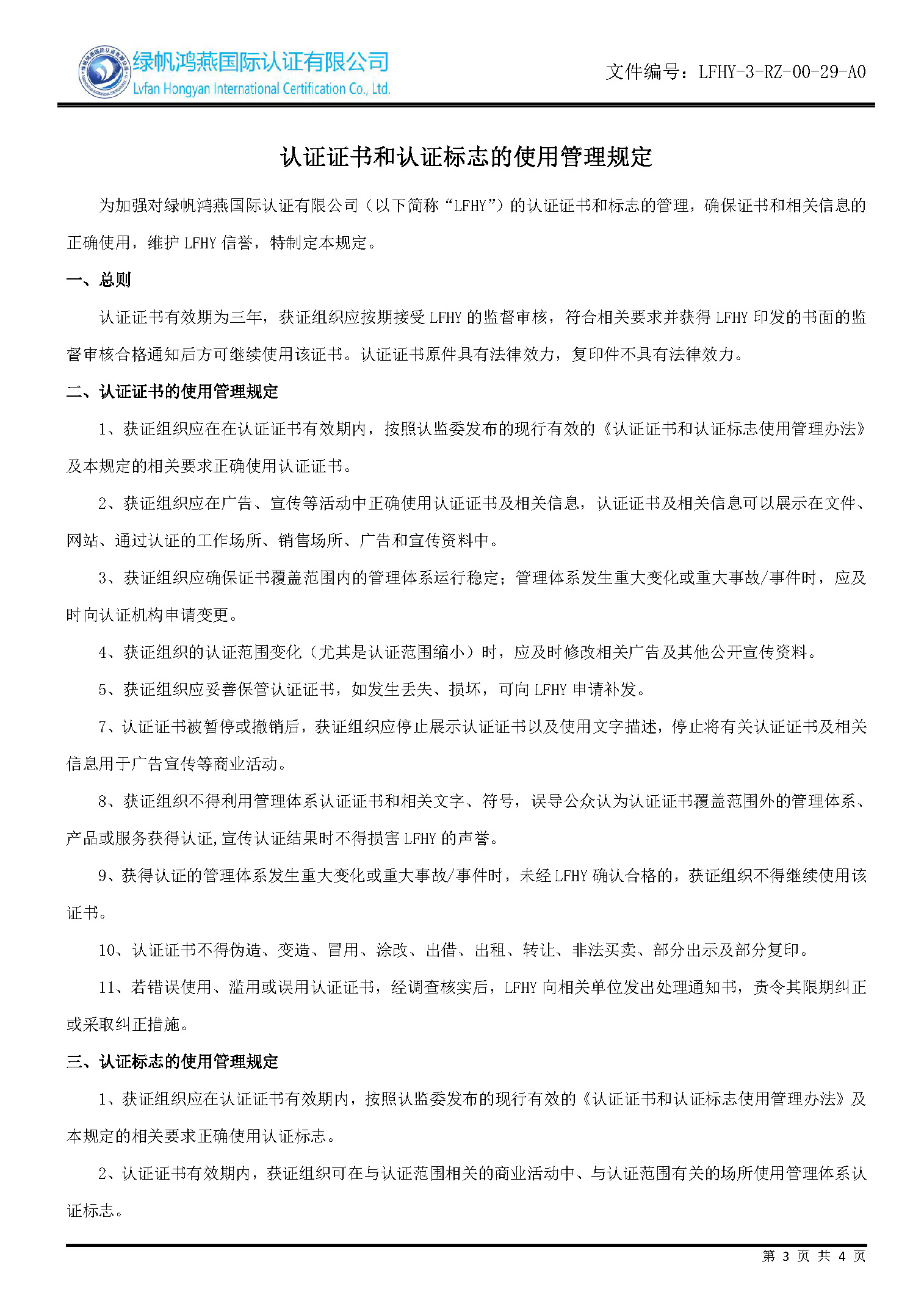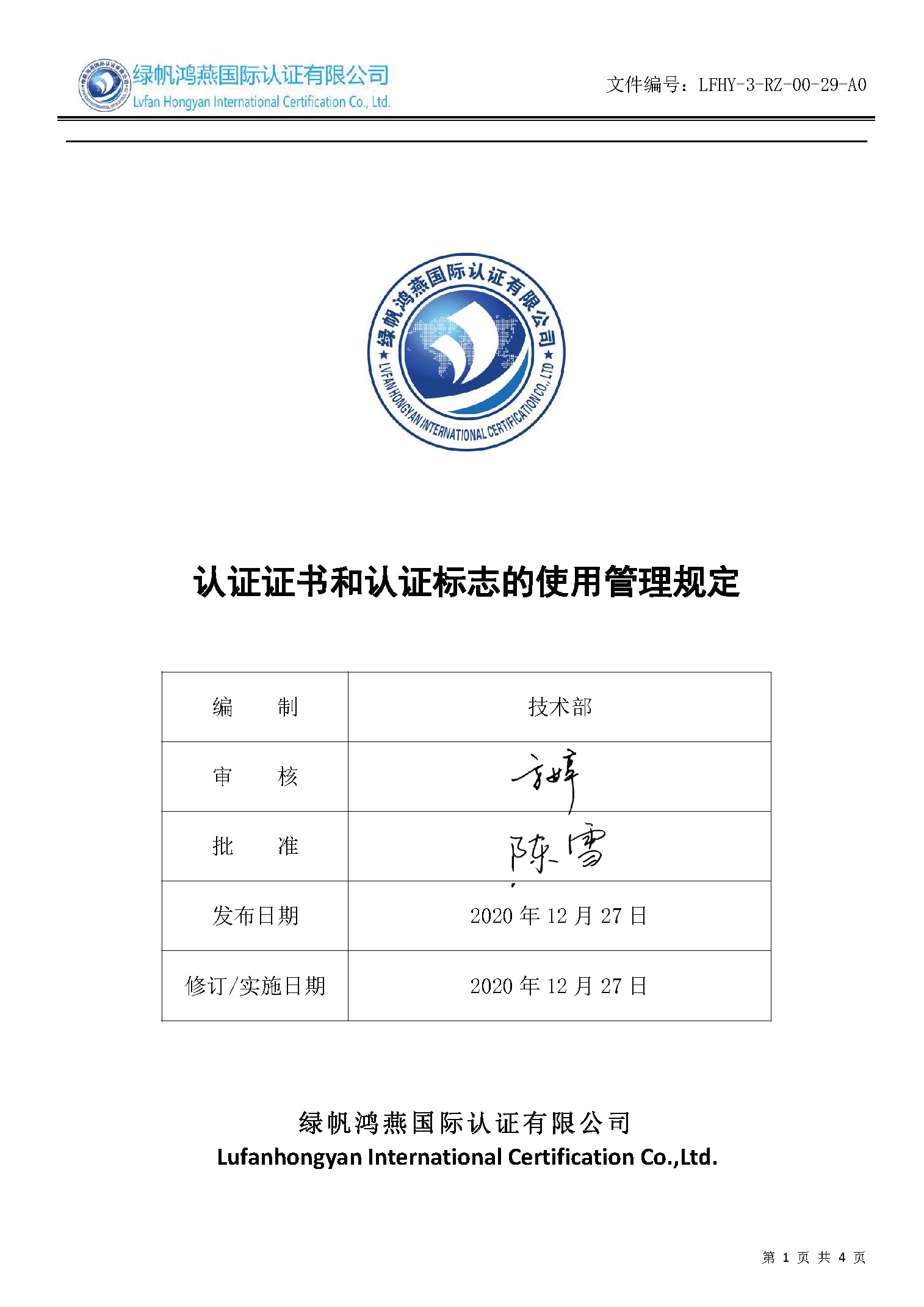 綠帆鴻燕國際認證有限公司(簡稱LFHY)是經國家認證認可監督管理委員會批準的第三方認證機構